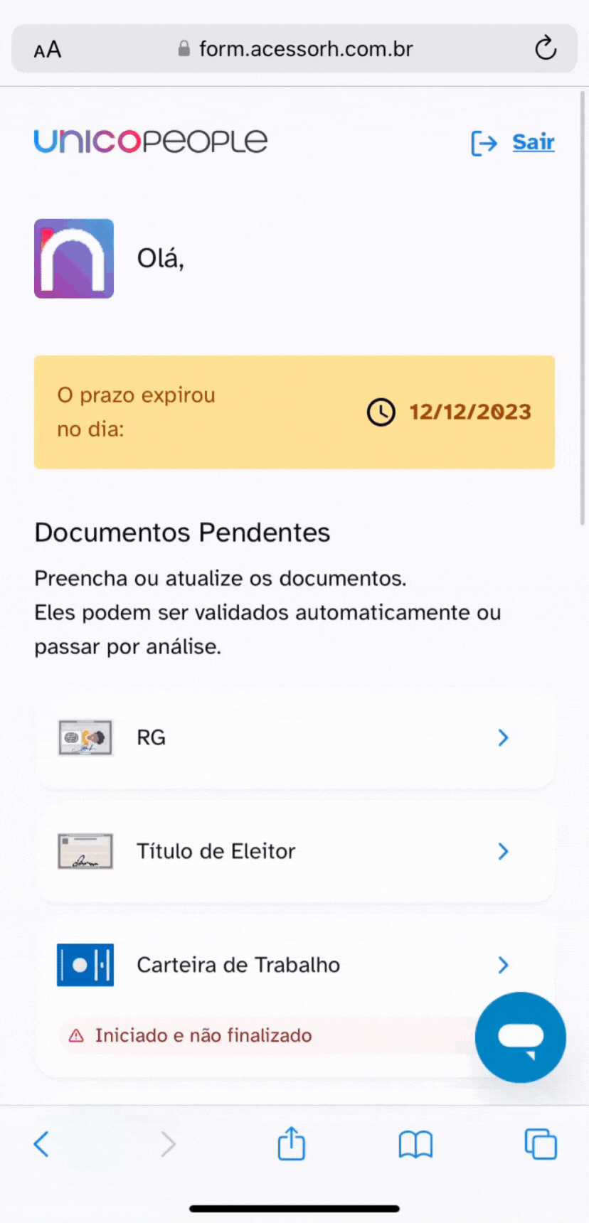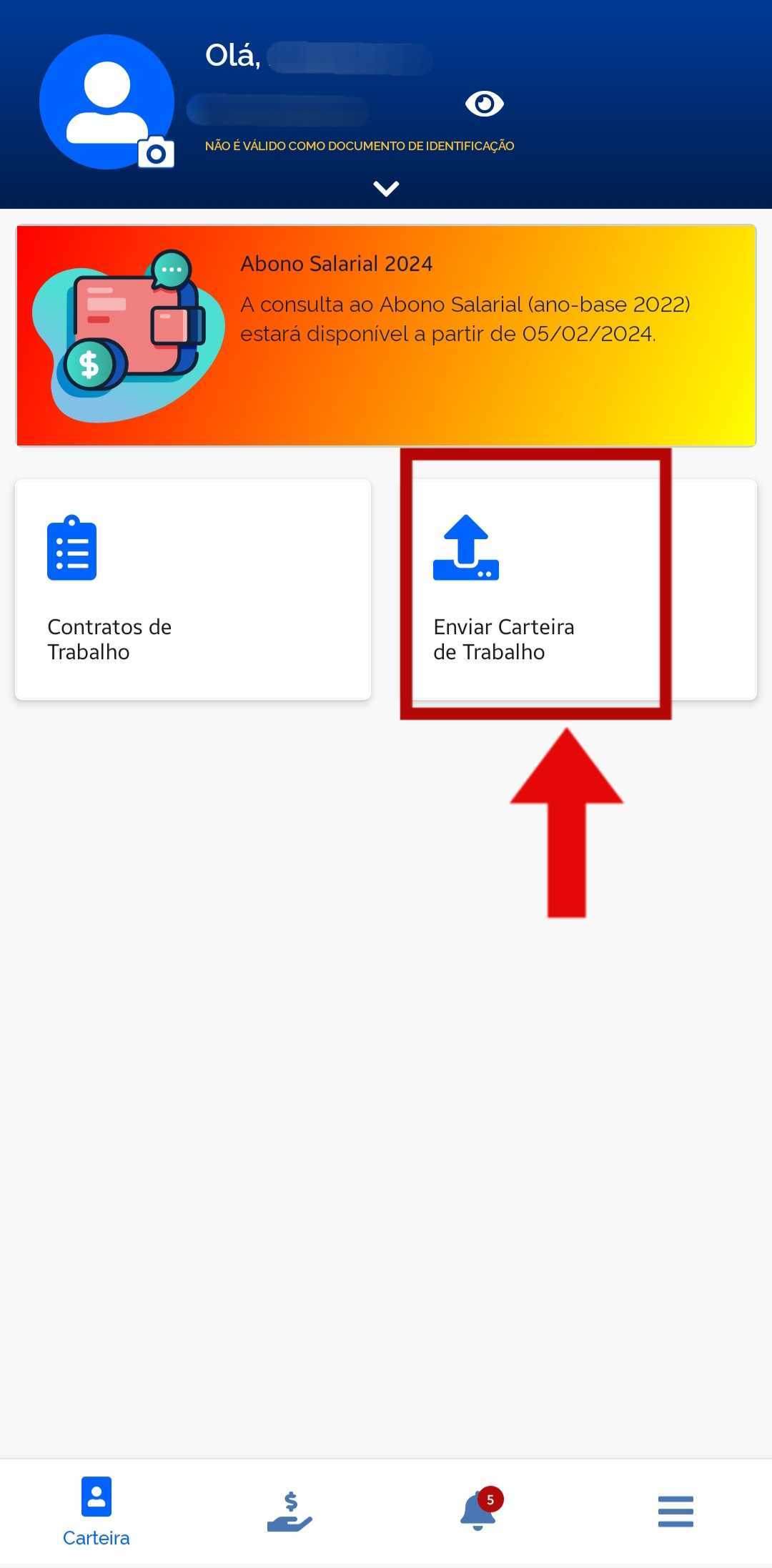 1. Clique no botão "Enviar Carteira de Trabalho".