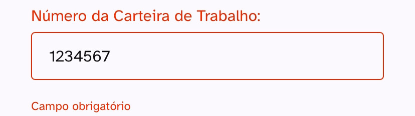 • Número da Carteira de Trabalho: coloque os 7 primeiros números do seu CPF.