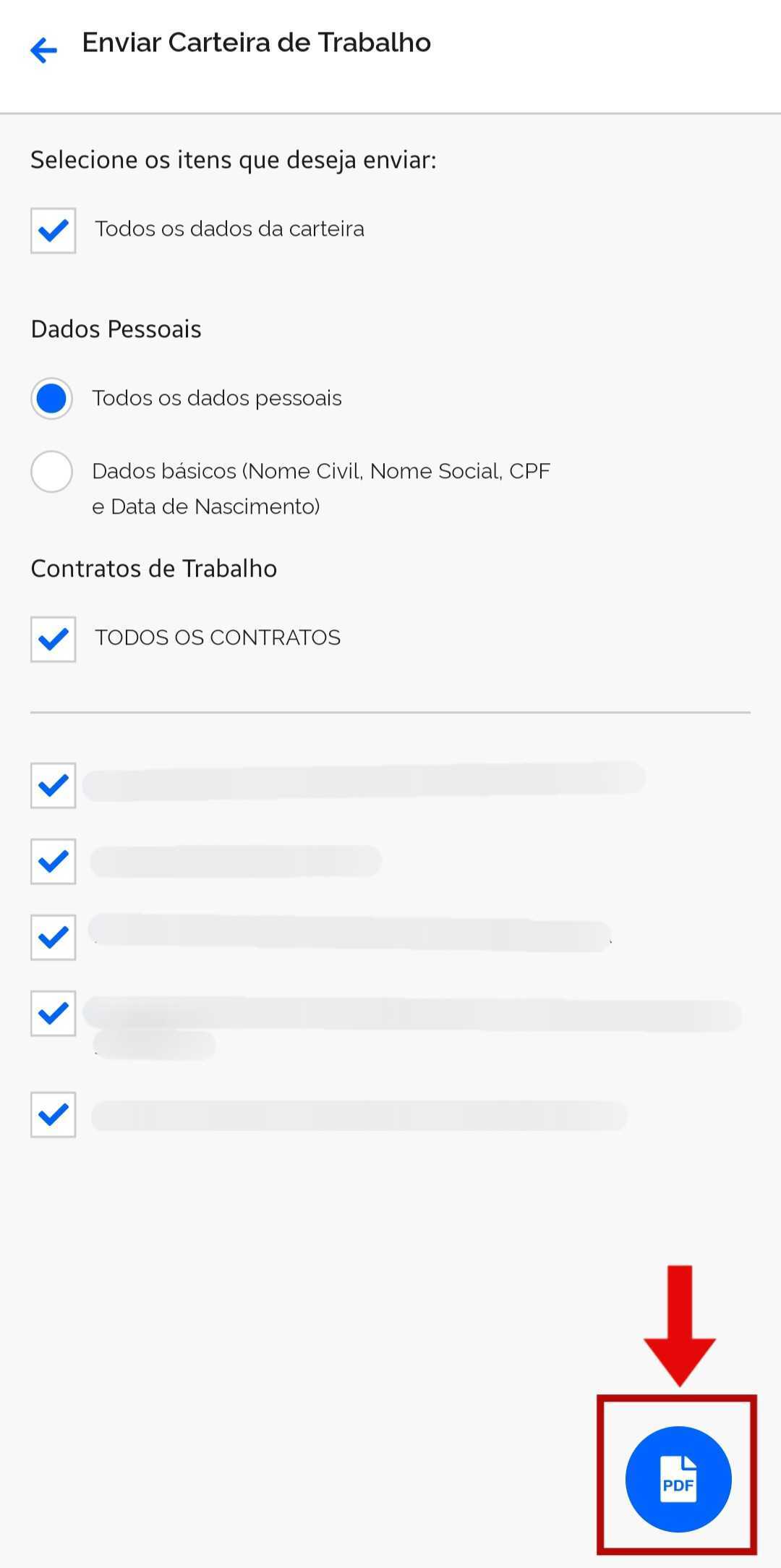2. Selecione os dados que deseja incluir no PDF (por exemplo, dados pessoais, contratos de trabalho).