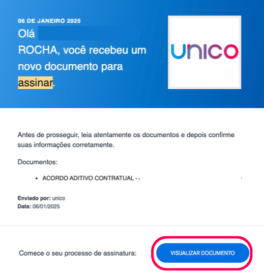 Ao receber o e-mail contendo o documento que você deve assinar, você encontrará duas opções de assinatura: