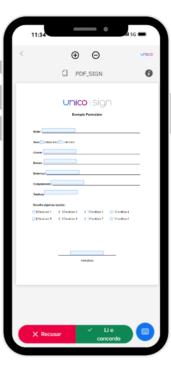 Importante: se você recusar um documento da lista, todos os outros também serão recusados. Se não desejar assinar, entre em contato com a pessoa responsável pela emissão.