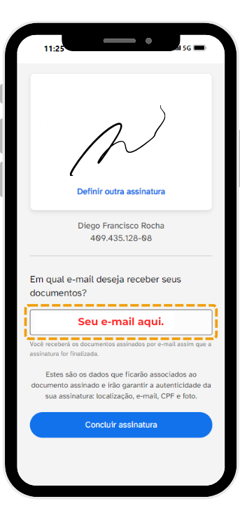 9. Depois de concluir o processo de assinatura e biometria (se necessário), confirme o seu e-mail no campo indicado abaixo, pois é onde você receberá uma cópia, certo?