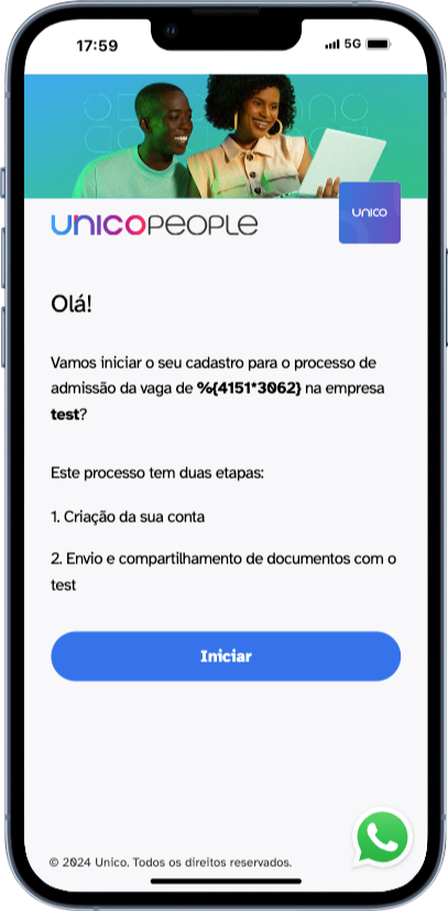 ⚠︎ Lembre-se: o envio do link é responsabilidade do RH da empresa que está te contratando. Caso não tenha recebido, pode ser que o RH ainda não tenha criado o seu cadastro.