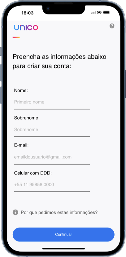 Preencha com cuidado seu nome, sobrenome, e-mail e número de celular com DDD. Depois, você vai receber um código de autenticação no e-mail que você colocou.