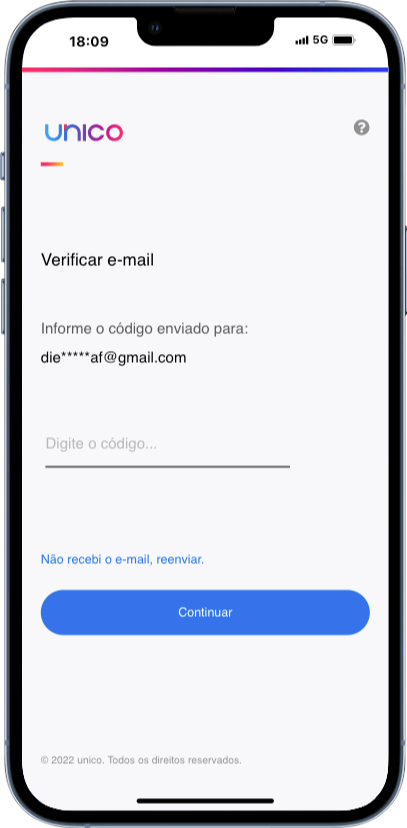 O código pode levar até 5 minutos para ser enviado, por isso, é importante que não solicite vários códigos, ok? Você deve informar o último código enviado.