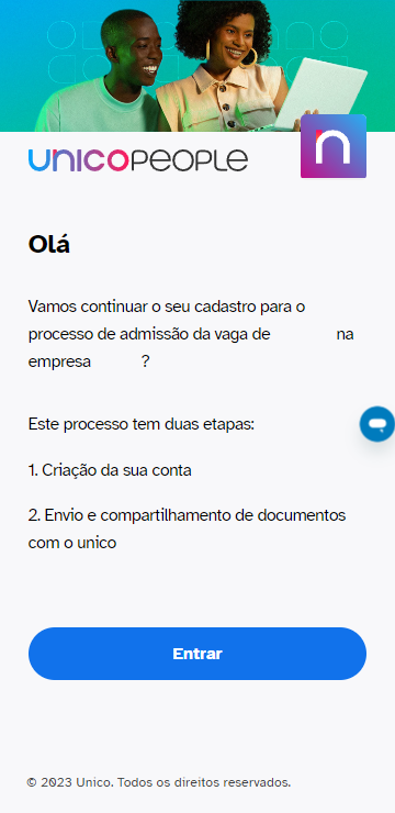 1. Utilize o link enviado pela empresa via SMS ou e-mail para acessar sua conta, ou clique aqui.