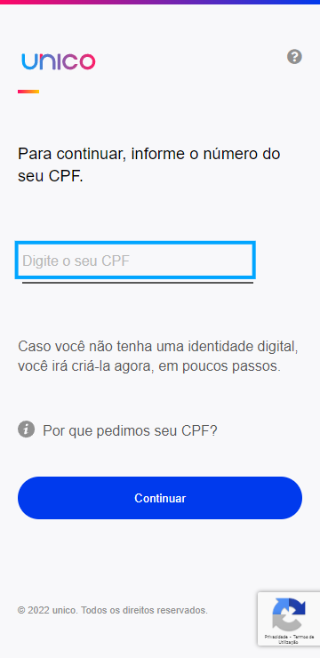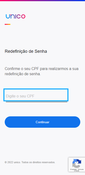 2. Na tela de login, insira o número do seu CPF e clique em "continuar".