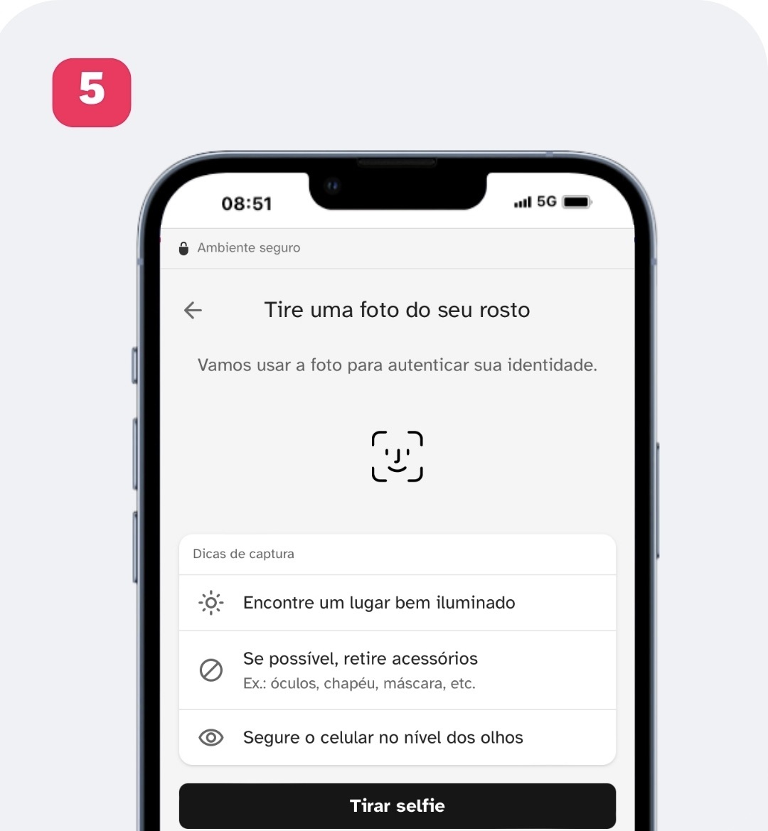 5. Após conceder o acesso, iniciaremos o processo de captura; basta clicar em "tirar selfie".