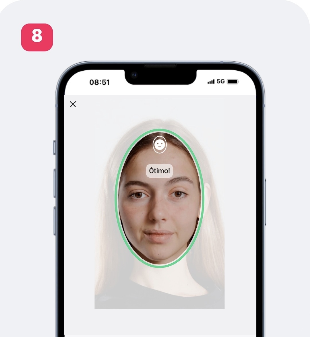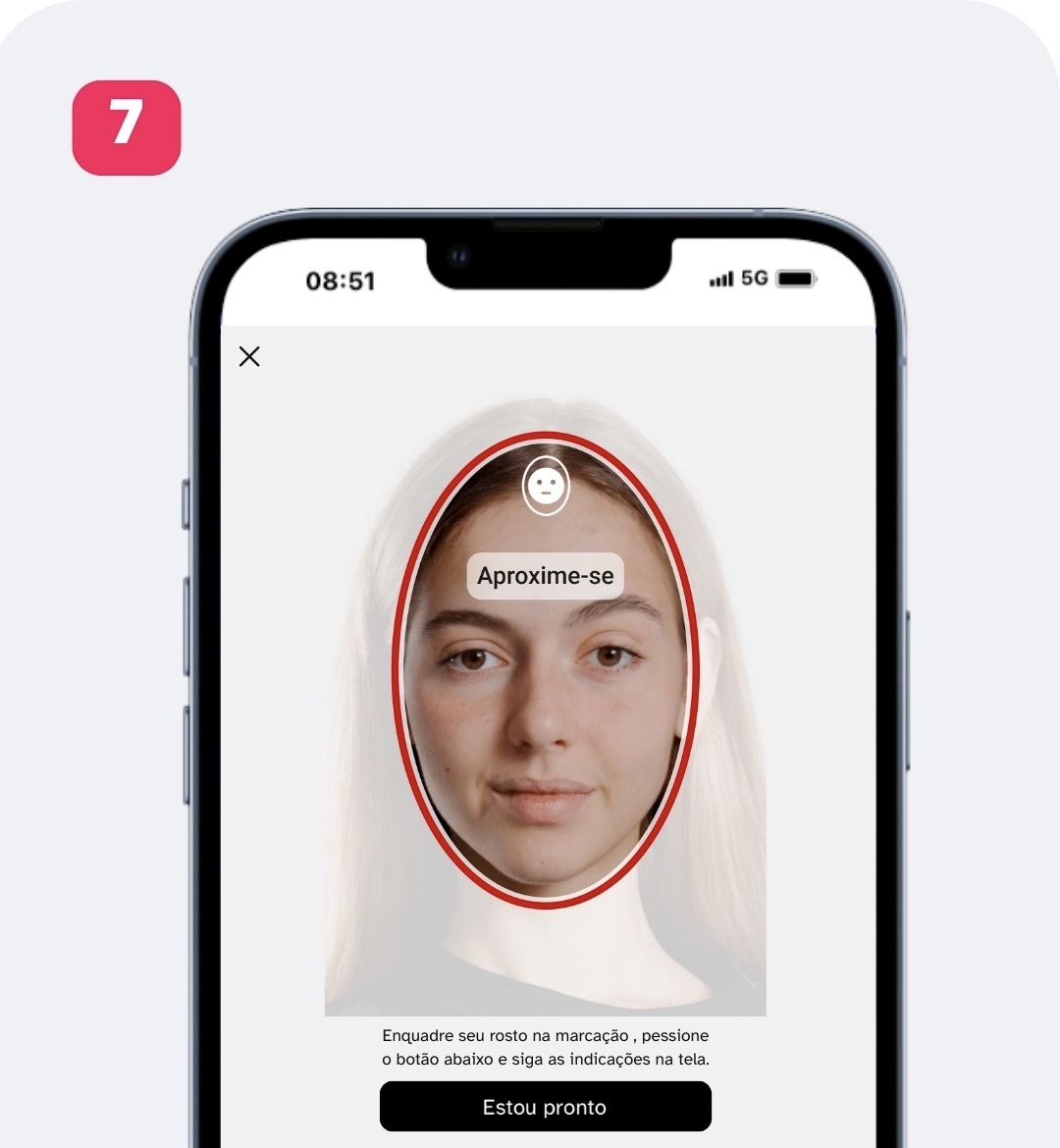 7. Durante a captura, preste atenção às instruções exibidas na tela, como posicionar seu rosto mais próximo da câmera.