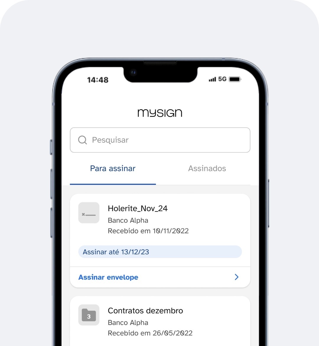 Caso sua empresa tenha solicitado sua assinatura, os documentos pendentes serão exibidos nesta aba.