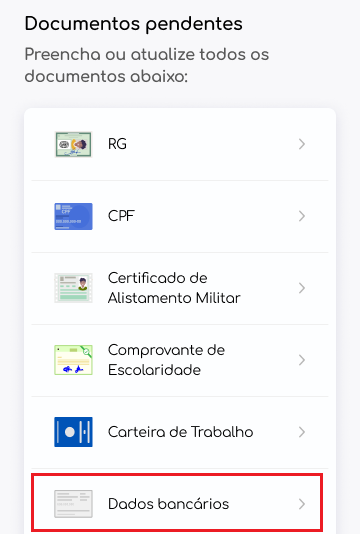 ⚠︎ Importante: se o tipo da sua conta for "corrente“, o envio da foto do documento só é liberado se, durante a primeira validação, for identificado algum dado incorreto.