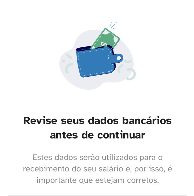 Para receber o pagamento do salário, é necessário cadastrar os dados que comprovem a existência e os detalhes da sua conta bancária.
