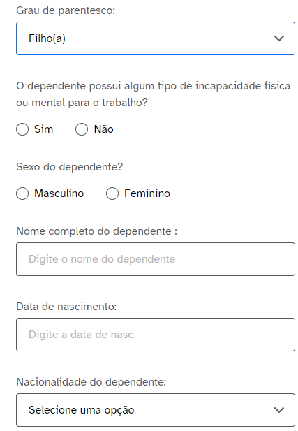 3. Depois disso, selecione o grau de parentesco do seu dependente.