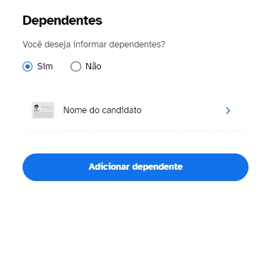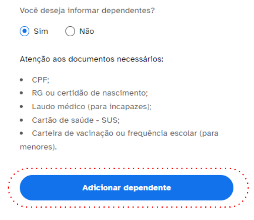 2. Selecione "sim" e depois clique no botão “Adicionar dependentes”.