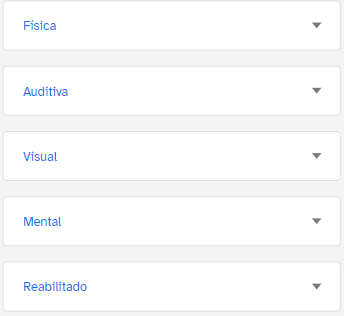 • Física: caracterizada por limitações no funcionamento do corpo humano, como amputações, deformidades congênitas, doenças crônicas e outras.