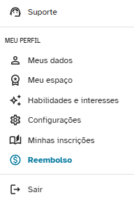 Para fazer a solicitação do reembolso (se disponível na sua empresa), clique no botão Reembolso, localizado no menu inicial (sua foto ou suas iniciais), conforme imagem: